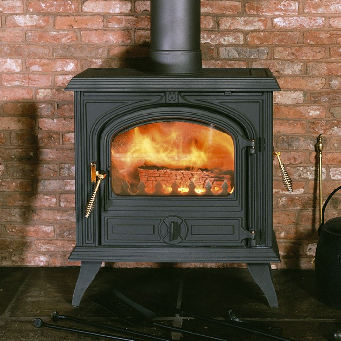 The Franco Belge Camargue has a different look to many of the Franco Belge stoves; with its distinctive brass coiled handle on the front and side loading doors. The side loading door comes as standard and is perfect for when you would like to use longer logs if you prefer to burn wood rather than smokeless solid fuels. The Franco Belge Camargue has the same heat output as the Limousin at 10 Kw. The curved glass door gives a beautiful view of the fire. Available in traditional matt Black stove paint.